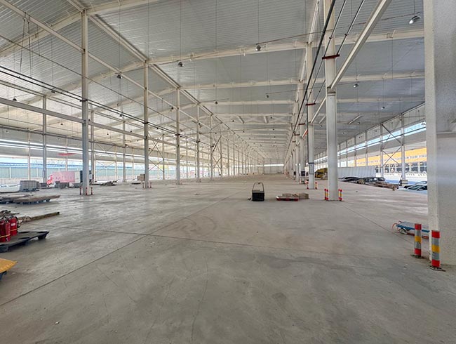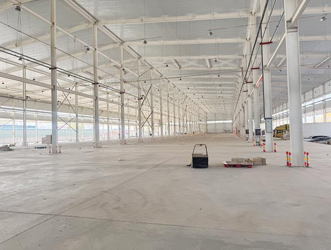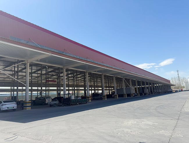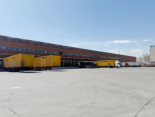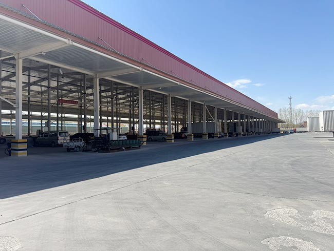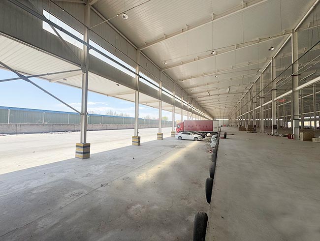 一号库建筑面积13113.8㎡,二号库建筑面积13890.69㎡,均为高台双边库设计,装卸货高效便捷;库内净高10米,空间开阔利用率高,库房前回车距离达34米,大型货车进出、转弯、调头无压力,极大提升物流周转效率。